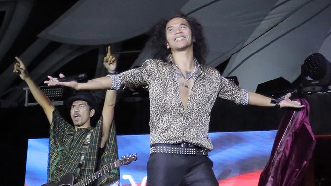 Liputan6.com, Jakarta - Ridho Hafiedz sempat mencuri perhatian di Konser HUT ke-35 Slank Indonesia Now di Stadion Utama Gelora Bung Karno (GBK), Jakarta, Minggu (23/12/2018) malam. Usai Slank mmembawakan lagu ke-22, "Sosial Betawi Yoi", dia ditinggal sendiri di atas panggung.
