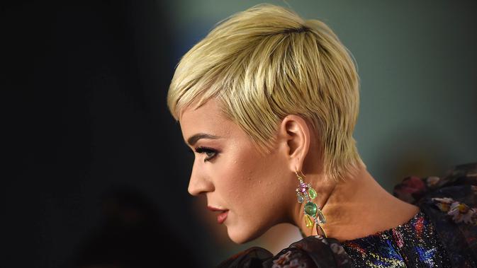 Penyanyi Katy Perry berpose saat tiba menghadiri pesta Gala Musicares Person of The Year 2019 di Los Angeles, AS (8/2). Katy Perry tampil menawan mengenakan gaun hitam bermotif kembang dengan belahan hingga paha terbuka. (AFP Photo/Valerie Macon)