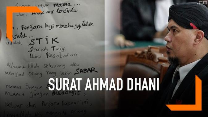 Liputan6.com, Jakarta Ahmad Dhani kirim surat untuk sang ibunda dari balik Rutan Medaeng. Dalam suratnya, ia mengaku akan lebih sabar lagi.