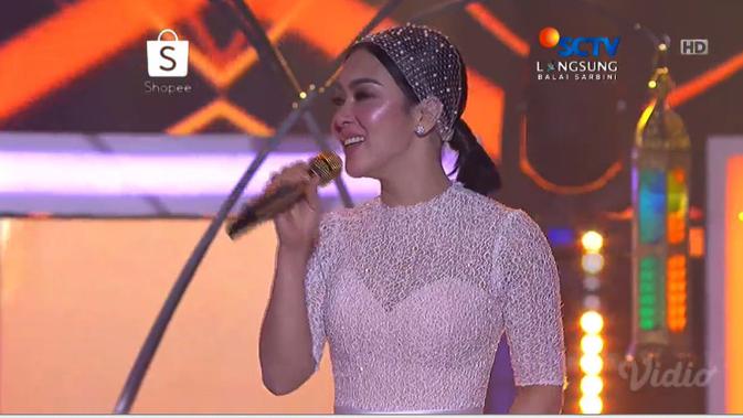 "Ayo siapa yang hafal lagunya, kita nyanyi bareng ya," kata Syahrini sesaat sebelum bawakan lagu "Restu".