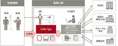 この情報収集には、医療機関から連絡を受けて、医薬情報担当者(MR)が医師にヒアリングを行い、連絡票を記入する「一報」と、一報収集後、詳細な調査が必要だと判断された場合に、MRが持参した詳細調査票を医師に直接記入してもらう「詳細報」があり、富士通FIPでは「一報」の収集支援機能を搭載したColle-SpoをSaaSで提供してきたが、今回は同サービスに「詳細報」の収集機能を追加した。