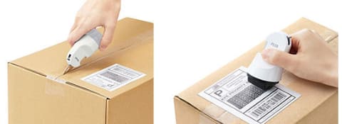 ケシポンシリーズは、宅配便の宛名や書類に記載された個人情報を保護するためのアイテム。ローラーケシポン 箱用オープナーでは、段ボールの粘着テープをカットできるギザ刃を本体に収納しており、個人情報保護と段ボールの開梱の二役を担う。
