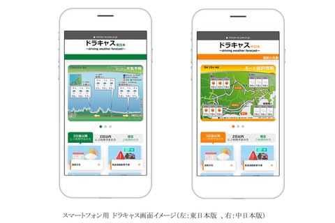 また、ドライバー向け道路・気象情報サービス「ドラキャス~driving weather forecast~」の情報提供範囲も、上記提供エリアに合わせて拡大する。