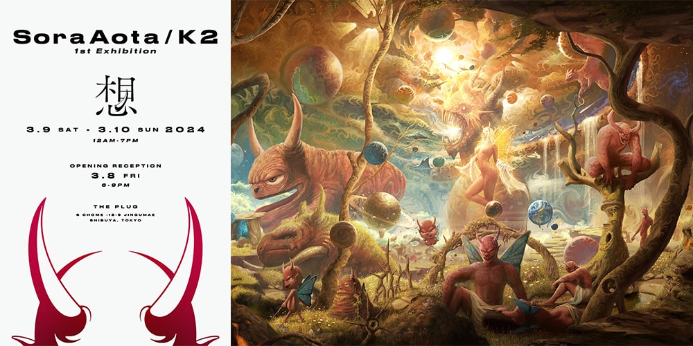 ヤング・サグ(Young Thug)やトリッピー・レッド(Trippie Redd)、イアン・ディオール(iann dior)、ジュース・ワールド(Juice WRLD)といった名だたるアーティストたちのアートワークを手掛ける若干22歳の気鋭デジタルアーティスト Sora Aota/K2によるキャリア初の個展 “想”が、東京・原宿のギャラリースペース『THE PLUG』にて3月9日(土)・10日(日)の2日間限定で開催される。